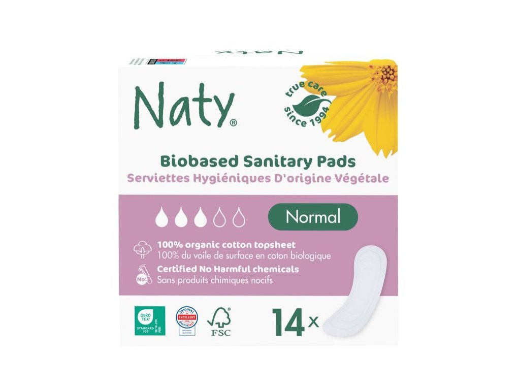 Menstruační vložky Naty jsou vyrobeny z kompostovatelných rostlinných materiálů. Celkový obal je z recyklovatelného papíru a obaly jednotlivých vložek jsou z certifikované 100% kompostovatelné fólie vyrobené z obnovitelných rostlinných materiálů. Jejich používáním tak může vaše svědomí zůstat naprosto čisté.